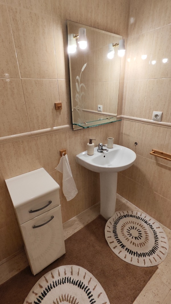 Apartmán má kúpelňu s vaňou a taktiež praktickú technickú časť s práčkou, vhodnú najmä pri dlhších pobytoch.