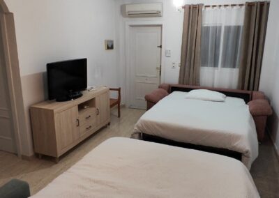 V obývacia izbě sú dva samostatné rozťahovacie gauče – plnohodnotné matrace 140 × 200 cm. Teda pohodlné spanie pre ďalšie štyri osoby.